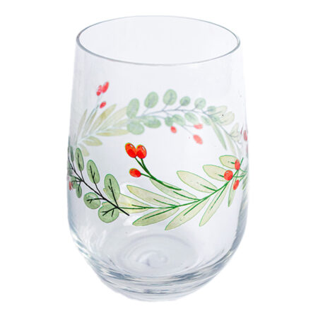 Holly Wreath Stemless Wine Glass 13oz / 370ml – 6pk