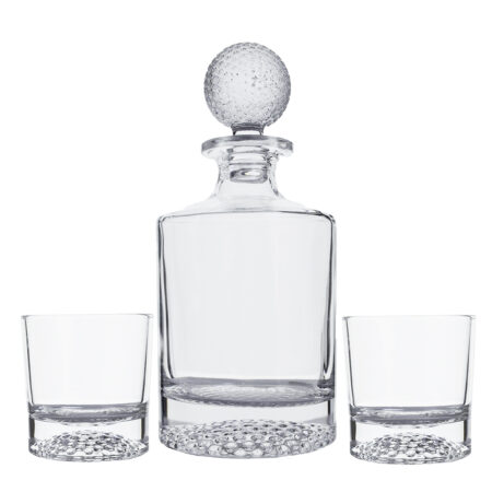 • Two matching glasses with elegant reflective golf ball-inspired base