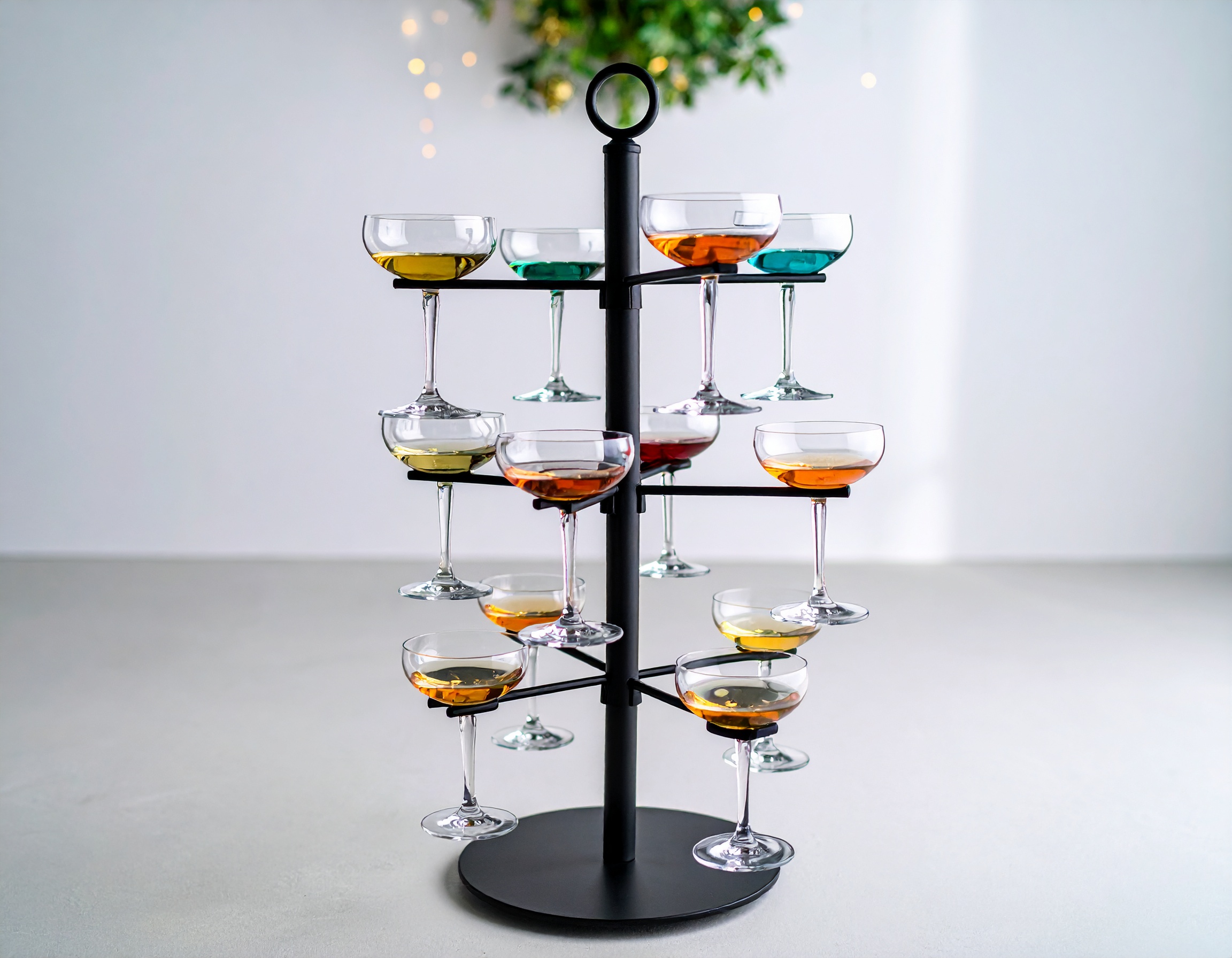 Add a wow factor to your next event! Elegantly display and serve cocktails with the Cuisivin Cocktail Tree Stand. This chic center piece is perfect for any event – weddings, birthdays, bridal showers, bachelorettes and more. The Cocktail Tree Stand holds a variety of different glasses – champagne flutes, coupes, wine glasses, wine glasses and more.