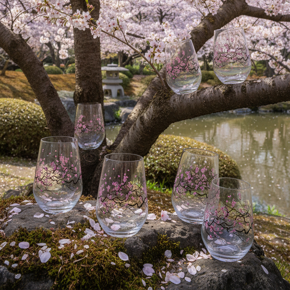 Cherry Blossom Stemless Wine Glass 13oz / 370ml – 6pk