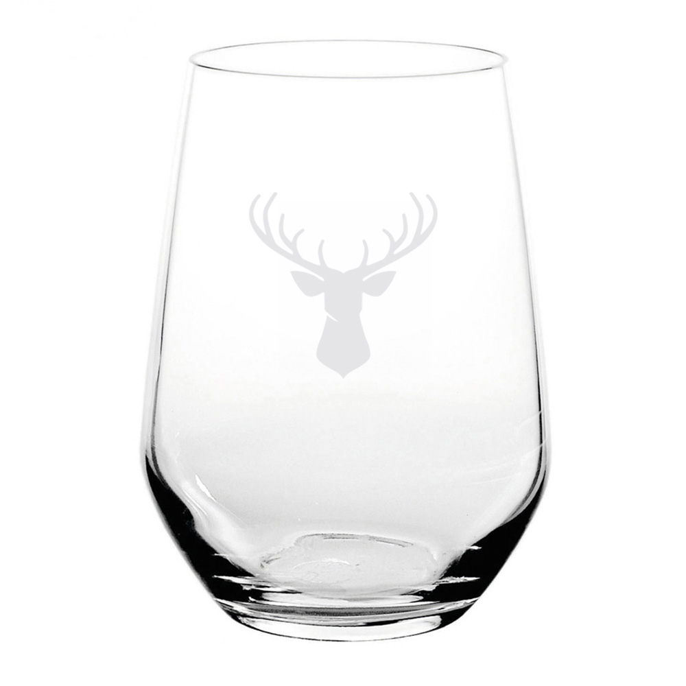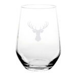 Tags: 380 ml, cuisivin, Decorated, glassware, stag head printed, stemless, tulip style stemless, wine glass