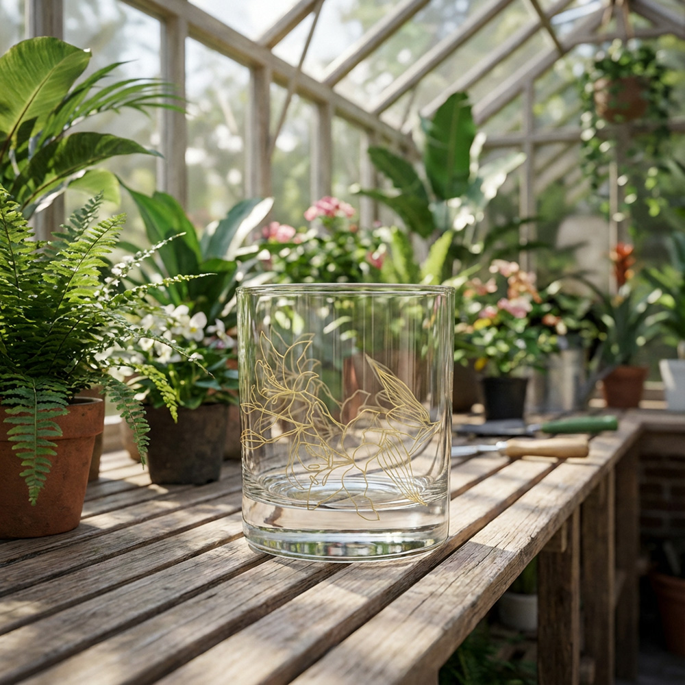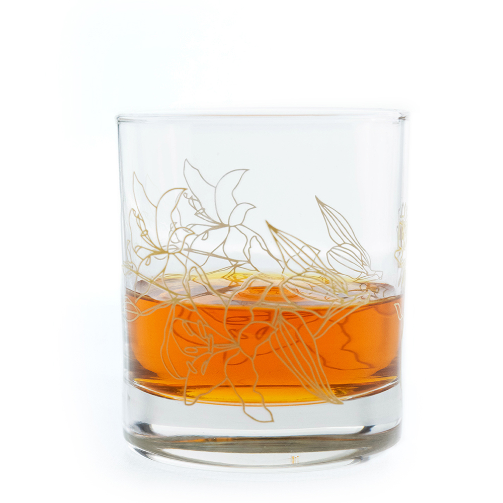 Artistry takes center stage. This whisky glass showcases beautiful, intricate line art featuring a graceful fox and floral motif — a design that’s both unique and timeless. Crafted with a solid base and clean silhouette, it’s proudly designed and printed in Canada, bringing refined elegance to every pour.