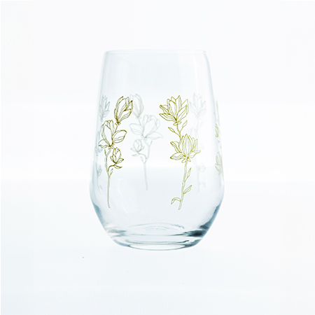 Golden Floral Stemless Wine Glass 13oz / 370ml – 6pk