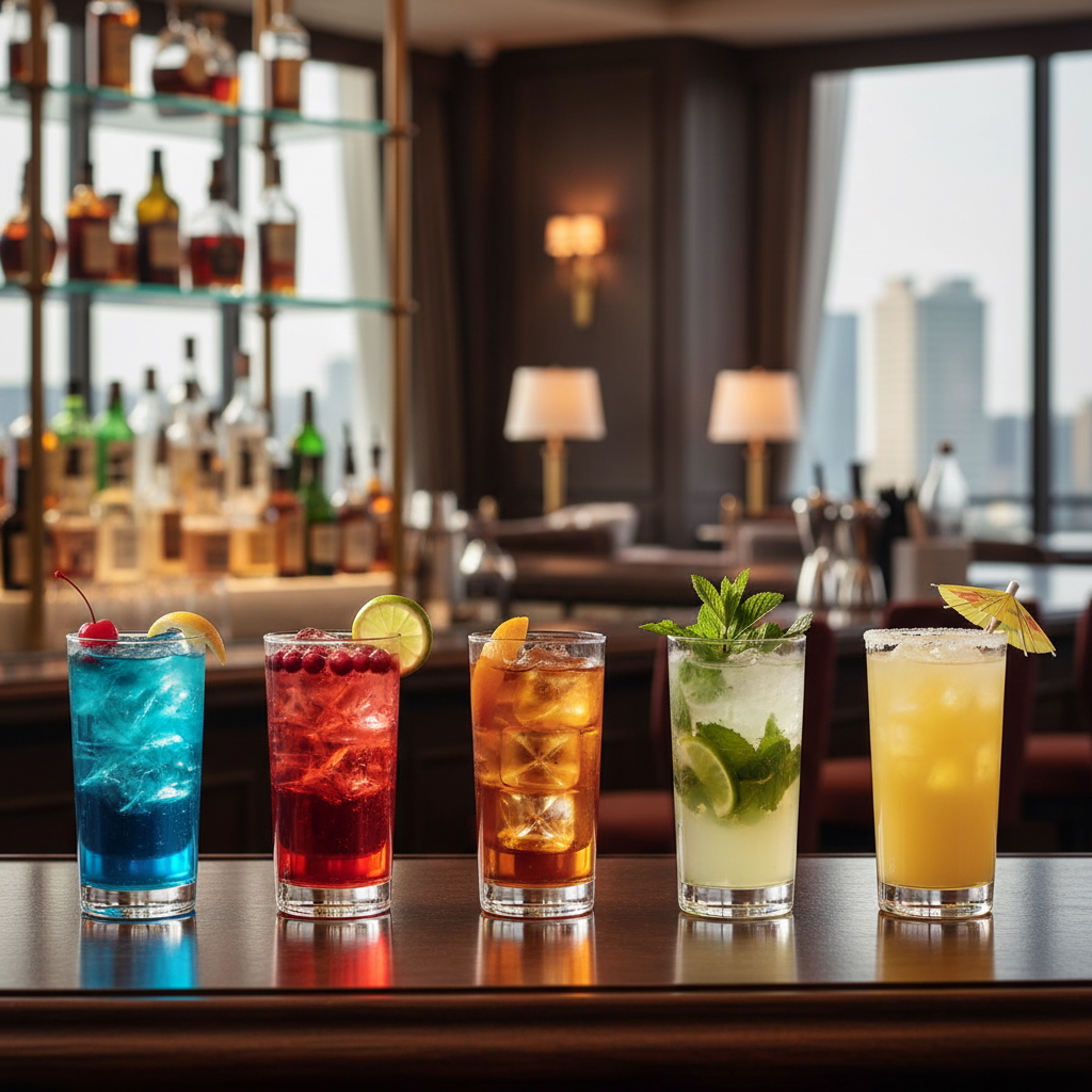 - 6 different cocktail recipes: Cosmopolitan, Tequila Sunrise, Manhattan, Mint Julep, Margarita, Mojito