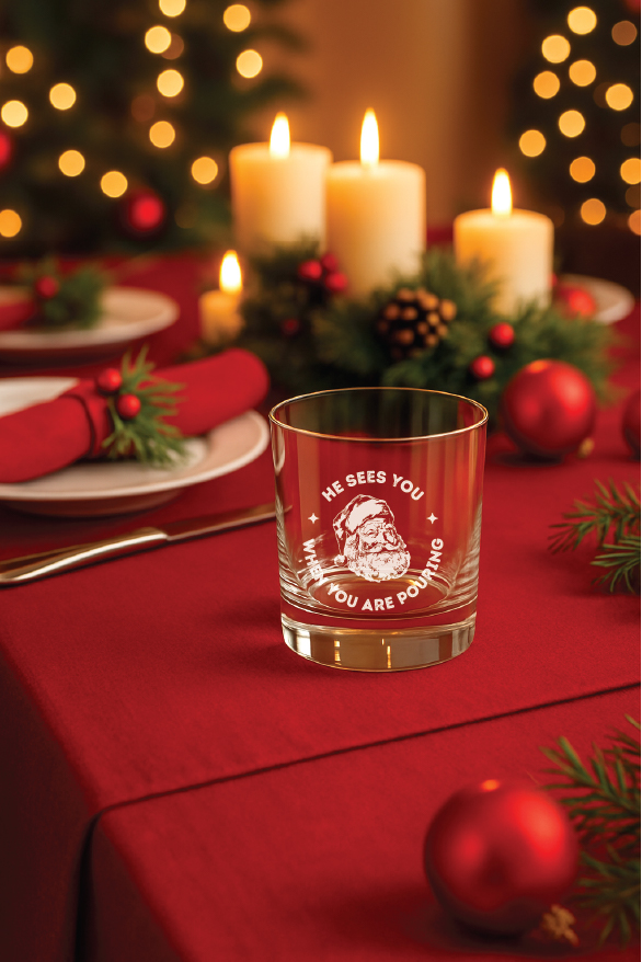 Raise a festive toast with a wink and a smile! This premium rocks glass features a charming vintage-style Santa illustration paired with the playful reminder: “He Sees You When You Are Pouring.” Whether you’re enjoying Christmas cocktails, eggnog, or a well-deserved nightcap, this glass brings holiday cheer and a touch of mischief to every pour.