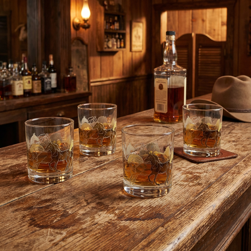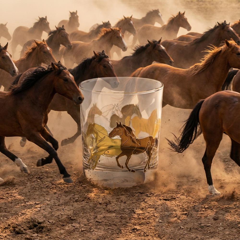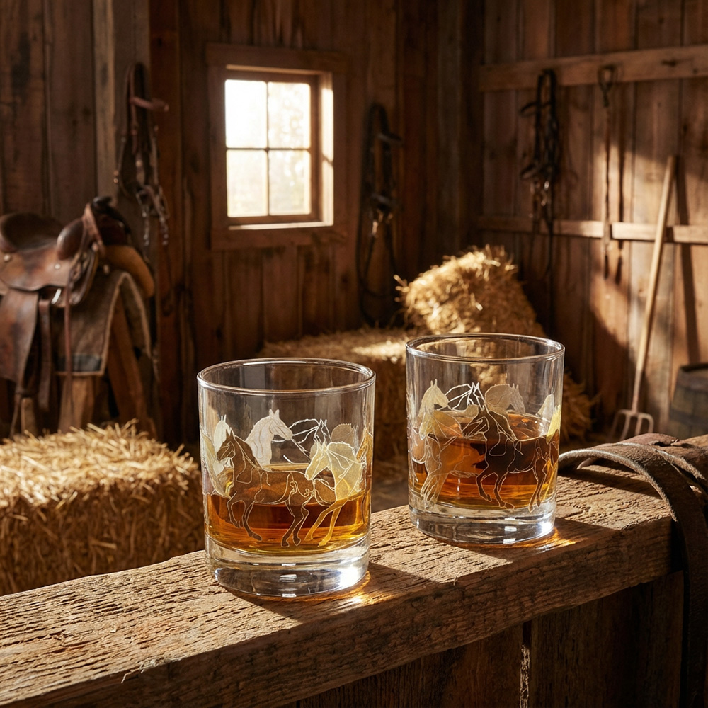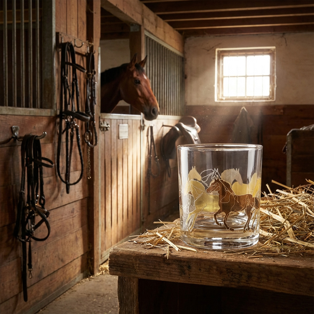 Tags: canadian design, Classic design, cuisivin, Decorated, glassware, horse, tumbler, whiskey glass