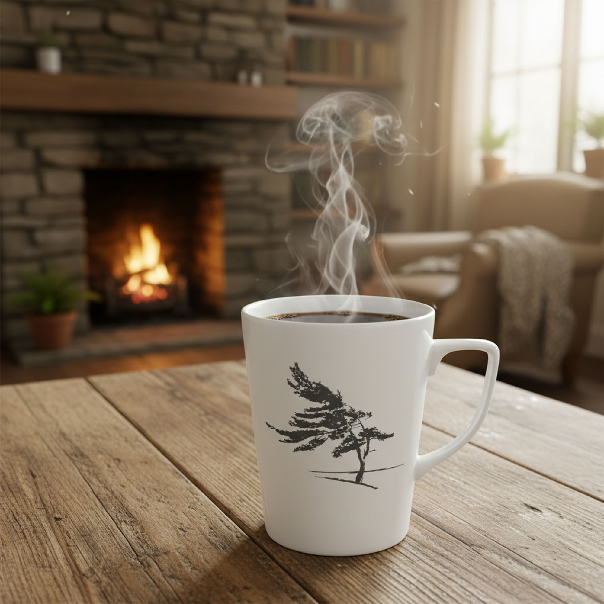 Inspired by resilient coastal trees, the Windswept West print brings calm, minimalist beauty to your daily ritual. This high-quality porcelain mug is cadmium-free, double-fired, and chip-resistant—made to last through countless refills. With a generous 13.8 oz / 400 ml capacity and printing done in Canada, its an understated design that brings calm, coastal character to every sip.