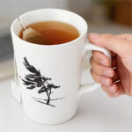 - Specially designed for tea, the mug features a tea-bag hanging slot